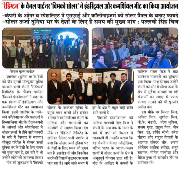 Vimco Solar, a proud channel partner of Radiant Limited, successfully organized an Industrial and Commercial Solar Meet in Jalandhar, Punjab. The event brought together leading industrialists, solar specialists, and energy consultants to discuss the